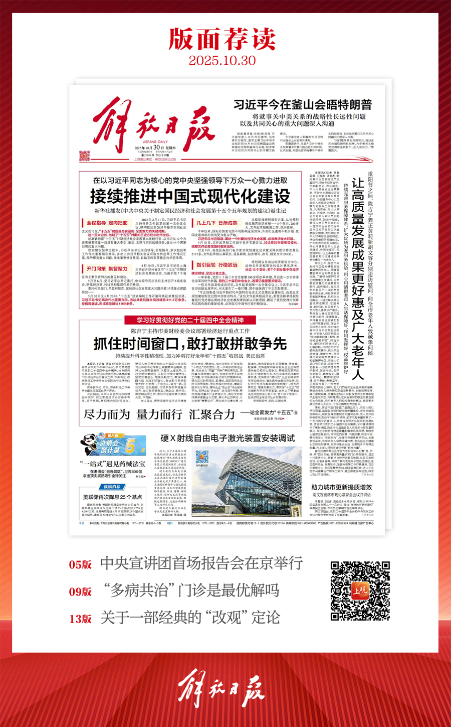 早上好!上观新闻『早读』来啦!2025年10月30日 星期四 农历九月初十上海多云,14~22℃